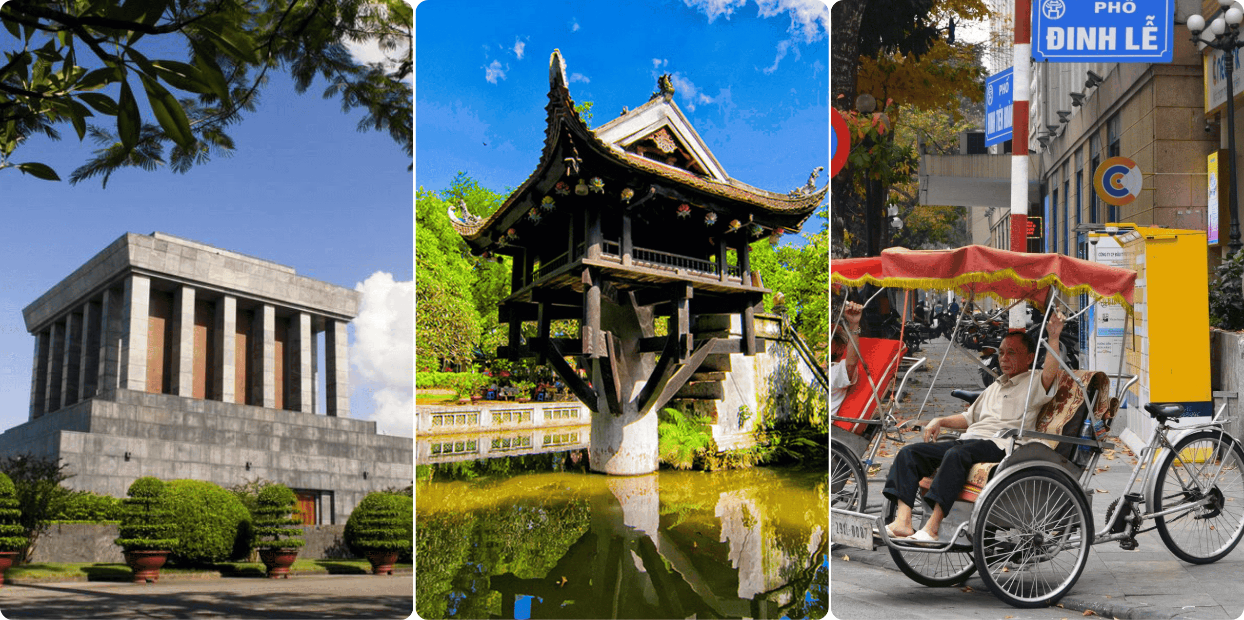 Découverte et balade dans la place historique de BaDinh où s’imposent le Mausolée de Ho Chi Minh (vue de l’exterieur), lieu de repos éternel du plus grand dirigeant du peuple vietnamien. Chaque jour, un grand nombre de Vietnamiens viennent y honnorer Ho Chi Minh. Continuation de la visite de la pagode au Pilier Unique, célèbre pour sa contruction originale emergeant d’un plan d’eau.