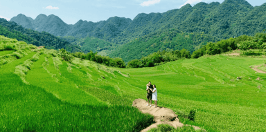 Puis, départ pour la vallée pittoresque de Mai Chau. Déjeuner local chez l’habitant dans un village authentique de l’ethnie Thaï résidant dans leurs maisons traditionnelles sur pilotis. Promenade à pied ou à vélo à la découverte des paysages à couper le souffle et en contact convivial avec les habitants locaux.