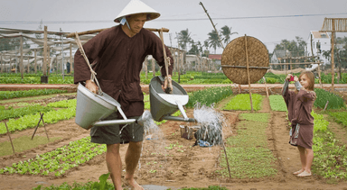 Balade à vélo à travers la campagne de Hoian, jusqu’au village de pêche Cam Thanh. Promenade en panier rond et découverte la vie quotidienne des pêcheurs. Continuation de la balade vers le village de maraicher Tra Que. Une petite séance de massage aux pied et de cours d’initiation de cuisine locale pour la préparation de BanhXeo et d’autres plats traditionnels du Vietnam. Déjeuner chez l’habitant.