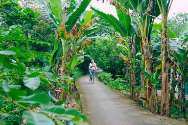 Balade à vélo ou à tuk tuk à travers la campagne typique, des vergers verdoyants et des scènes de la vie quotidienne.