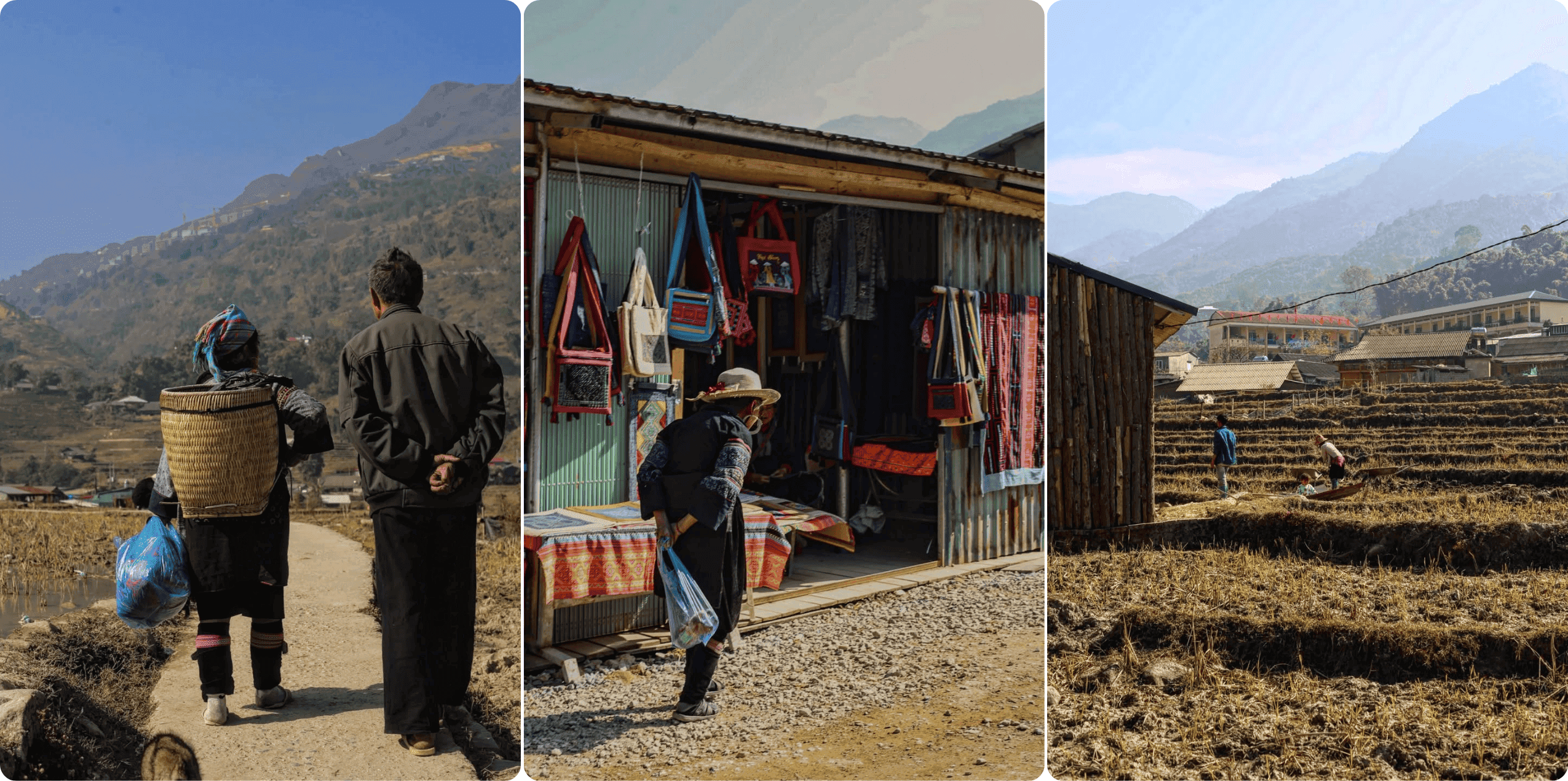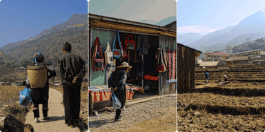 Immersion culturelle authentique : vous traverserez les villages de Lao Chai et Ta Van, terres des minorités Hmong noirs et Giay. Cette marche paisible vous permet d’observer la vie quotidienne des habitants et d’admirer les paysages bucoliques de la vallée. Déjeuner convivial chez l’habitant ou dans un restaurant local.